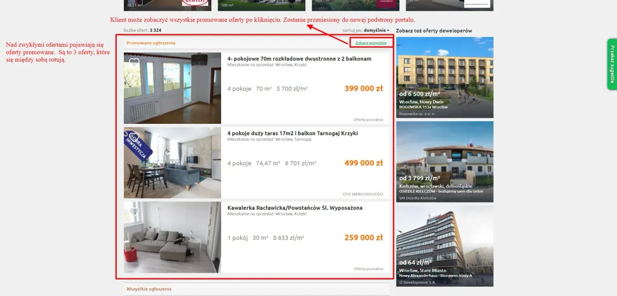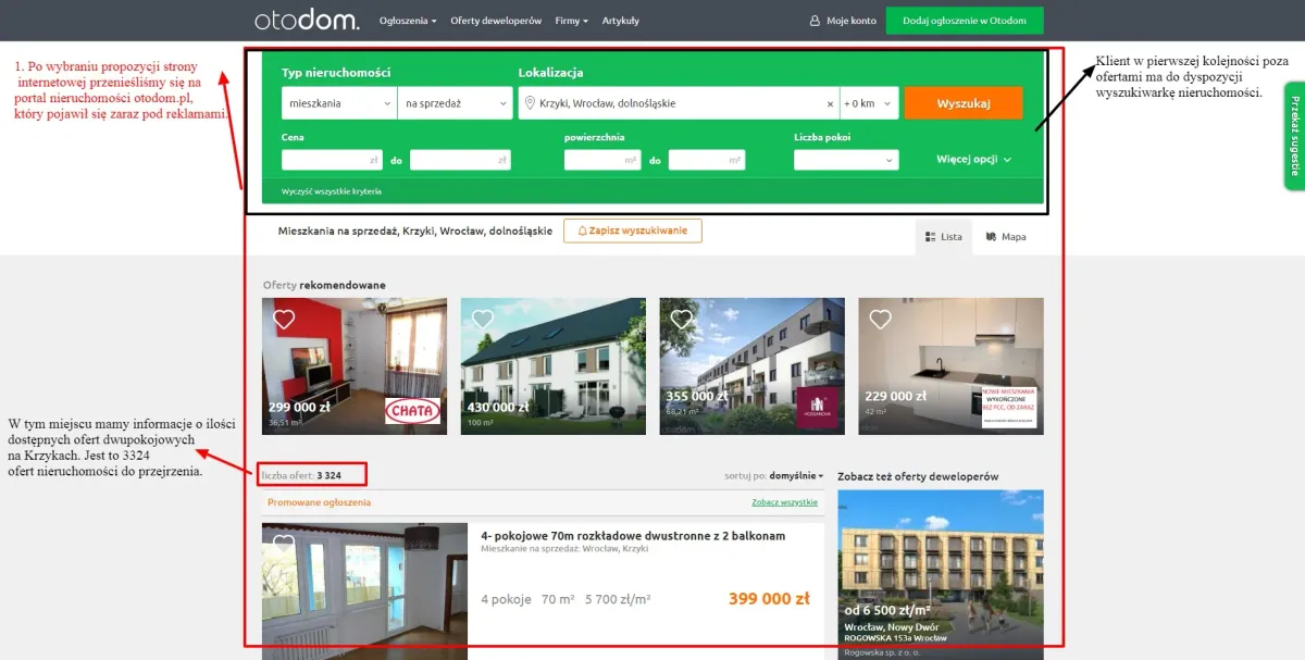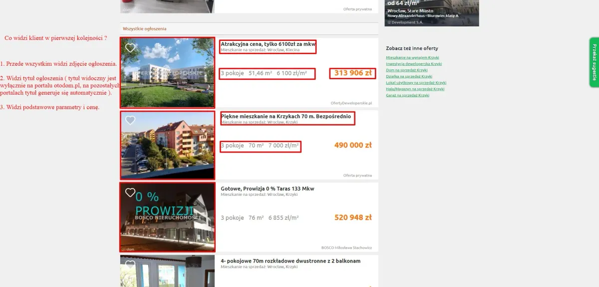 Wspomniałem wcześniej jak klient szuka ofert nieruchomości. Znając sposób w jaki klient wyszukuje nieruchomości możemy się domyślić, że będzie oglądał oferty, które przykują jego uwagę, które go zaciekawią.