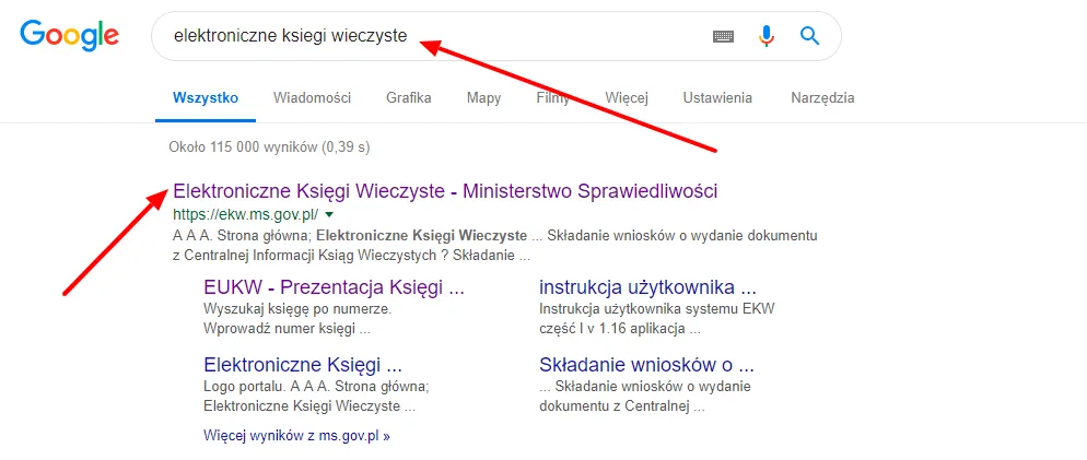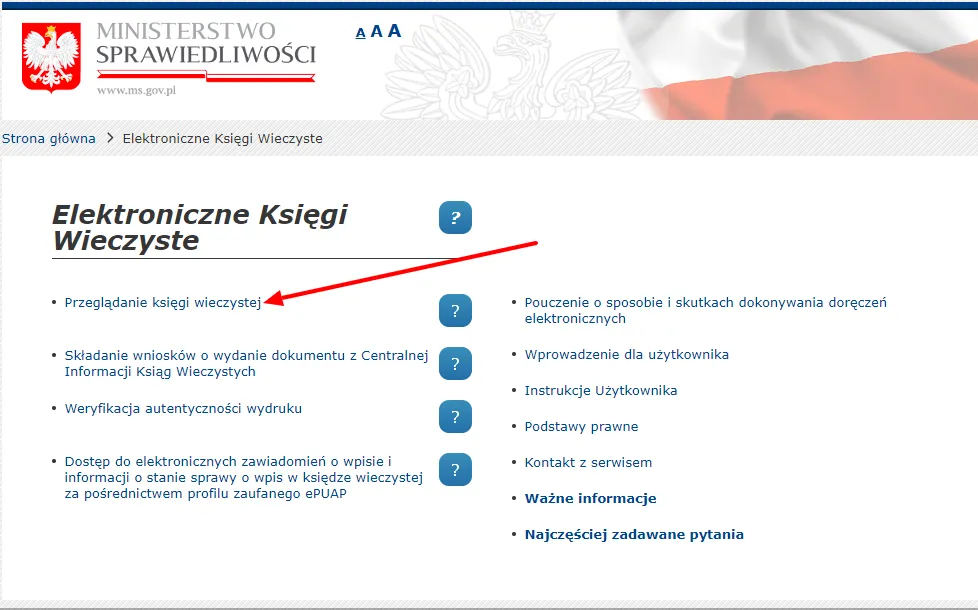 Najprościej sprawdzisz księgę wieczystą wpisując w wyszukiwarce hasło: „elektroniczne księgi wieczyste”.