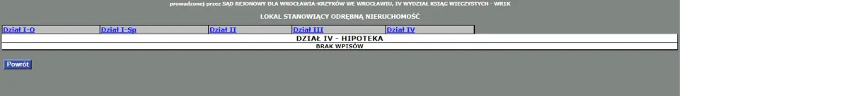 1. Pierwsza część numeru to lokalizacja Sądu Rejonowego sprawdzanej nieruchomości. Dla Wrocławia numerem lokalizacji jest WR1K.